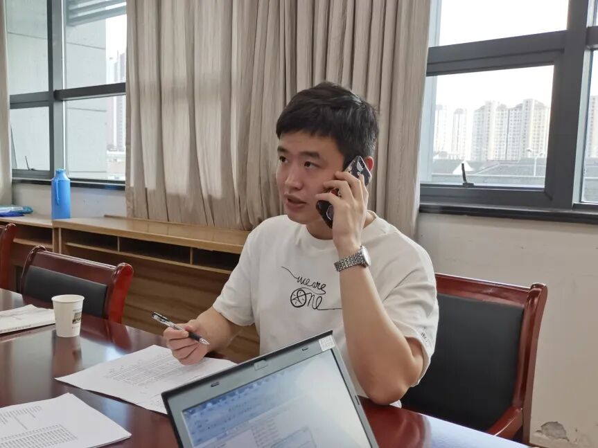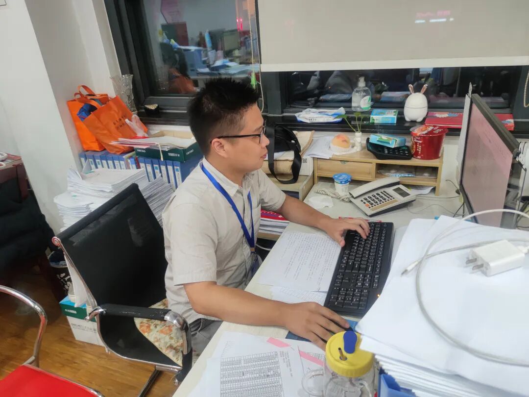 “六人组”实行“两班倒”,每个人都坚守自己的岗位,在疫情防控最前沿诠释着最质朴的初心:临时党支部书记尤向东虽然已年过五旬,但始终冲锋在前,炎炎烈日下现场督导一次不落;组长徐雷和大家一起放弃休息,共同开展数据核查工作,一干就是整整19个小时;罗靖武、令狐旭彦、张珊、吴升聪4名同志虽然年轻,但工作一丝不苟,一遍遍地拨打电话、整合数据,只为跑赢疫情传播的速度……